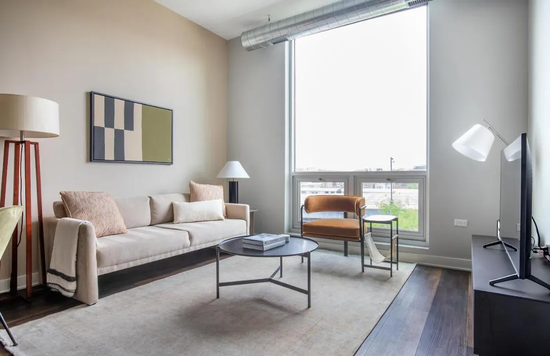 A microwave oven and kitchenware are also offered. In addition, the apartment is equipped with coffee/tea making machines. Kanela Breakfast Club preparing American dishes is located opposite to the accommodation. The 72 m² accommodation is located within a 25-minute drive of Chicago O'Hare International airport.